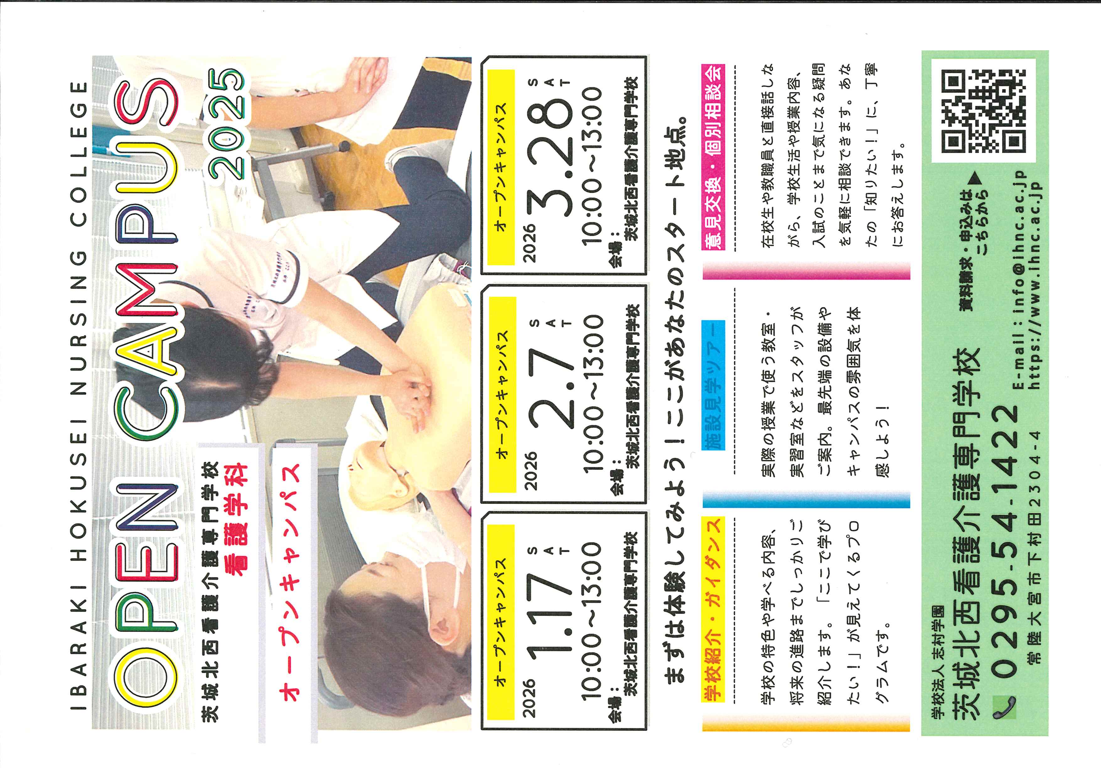 2025年12月6日 お知らせ・NEWS 看護学科オープンキャンパス(1月~3月)のご案内 詳しく見る 2025年10月31日 お知らせ・NEWS 学校法人志村学園寄付金Web芳名録 詳しく見る 2025年5月22日 教員募集 専任教員募集! 詳しく見る 2025年4月25日 個別相談 看護学科「個別相談会」毎月第2,第4水曜日開催中!道の駅かわプラザでの個別相談も受付中! 詳しく見る 2025年4月22日 未分類 【看護学科】令和8年度入学生 オープンキャンパスの案内 詳しく見る 投稿ナビゲーション 過去の投稿 1 2 … 8 次へ カテゴリ お知らせ・NEWS (16) 後援会NEWS (11) 未分類 (10) 個別相談 (1) 教員募集 (1) アーカイブ 看護学科オープンキャンパス(1月~3月)のご案内 学校法人志村学園寄付金Web芳名録 専任教員募集! 看護学科「個別相談会」毎月第2,第4水曜日開催中!道の駅かわプラザでの個別相談も受付中! 【看護学科】令和8年度入学生 オープンキャンパスの案内